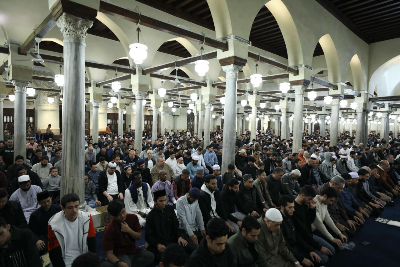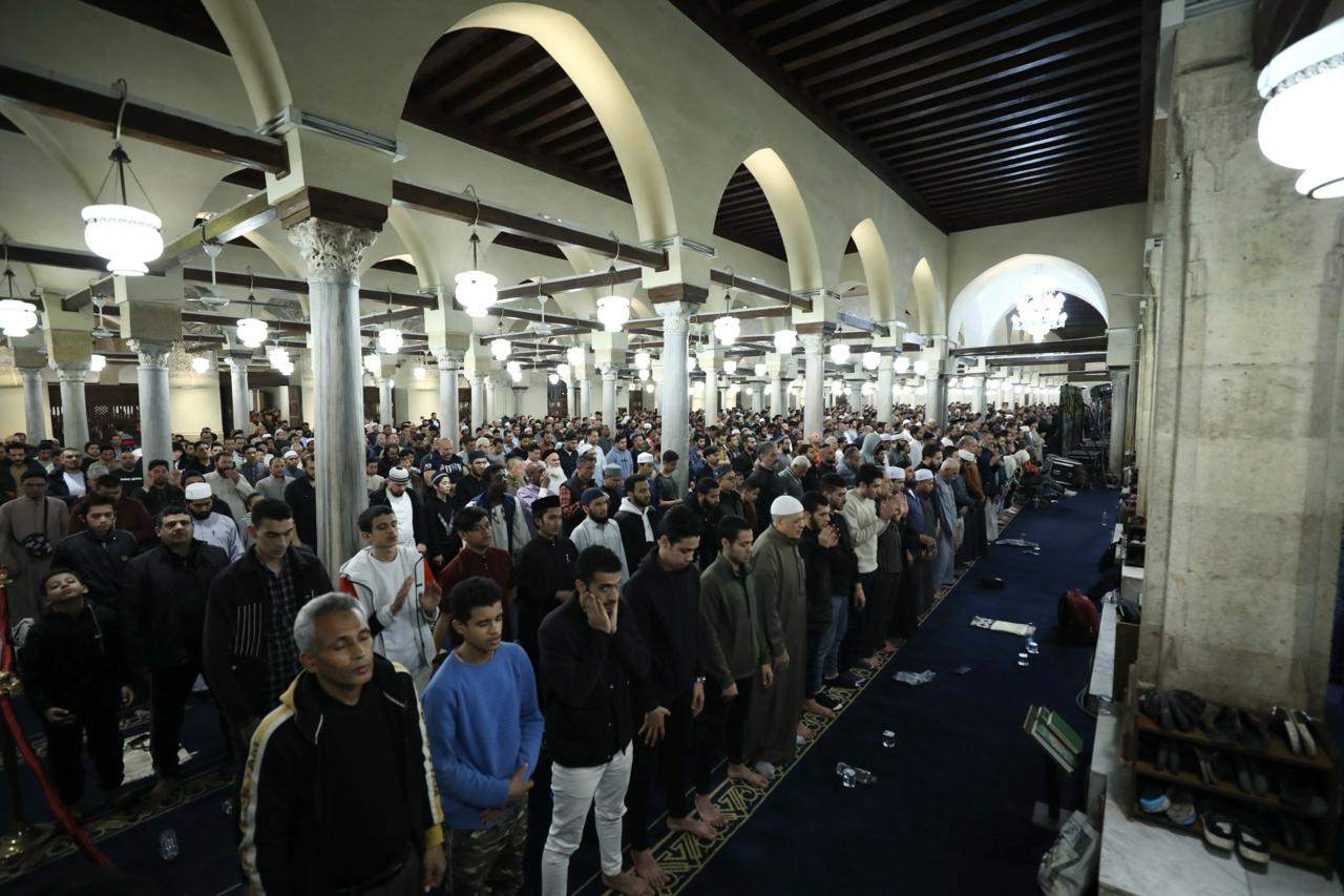 أروقته عجت بالمصلين.. الآلاف يؤدون صلاتي العشاء والتراويح بالجامع الأزهر