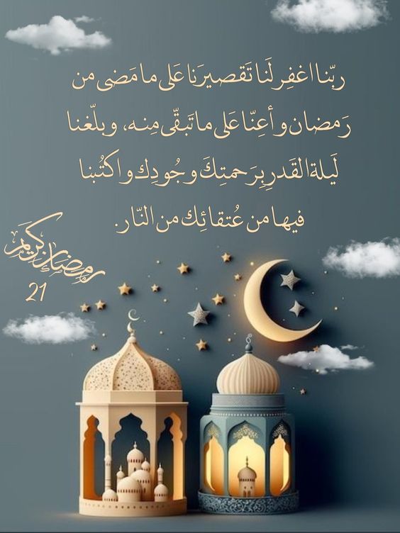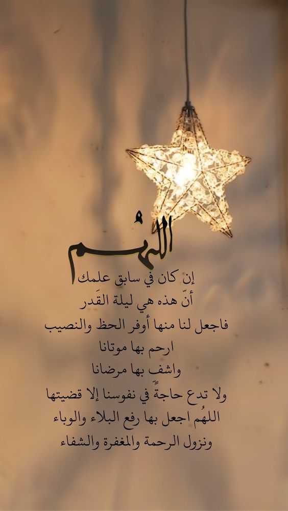 - اللهُم بلغني ليلة القدر واجعلني من الفائزين بها وأعني على مجاهدة نفسي وإصلاحها.