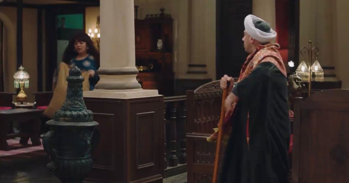 وتخبأ مربوحة الغوريلا في إحدى الغرف ويدخل العترة الغرفة ويجد الغوريلا ويشعر بالزعر، وتخبره مربوحة بأنها طلبت نسناس وتفاجأت بأنها غوريلا، وتطلب منه مربوحة بأن لا يخبر الكبير بشرط أن تحاول إقناعه بأن يسمح له بالسفر.