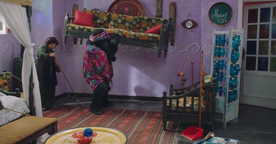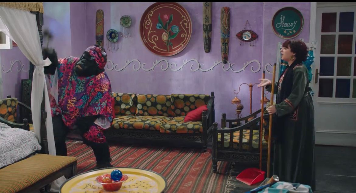 وتعيش مربوحة مغامرة صعبة وهي تحاول أن تداري أمر الغوريلا وتقنع الكبير بأنها إحدى قريباتها، ويكتشف أمرها جوني ويشعر بالزعر، كما تساعد الغوريلا مربوحة في تنظيف المنزل.