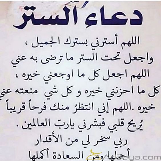- اللهُم يا سامع الشكوى، ويا شاهد كلِّ نجوى، اهدني من المعاصي وجنِّبني إيَّاها، واسترني في دنياي وآخرتي، إنَّك أنت اللطيف الخبير.