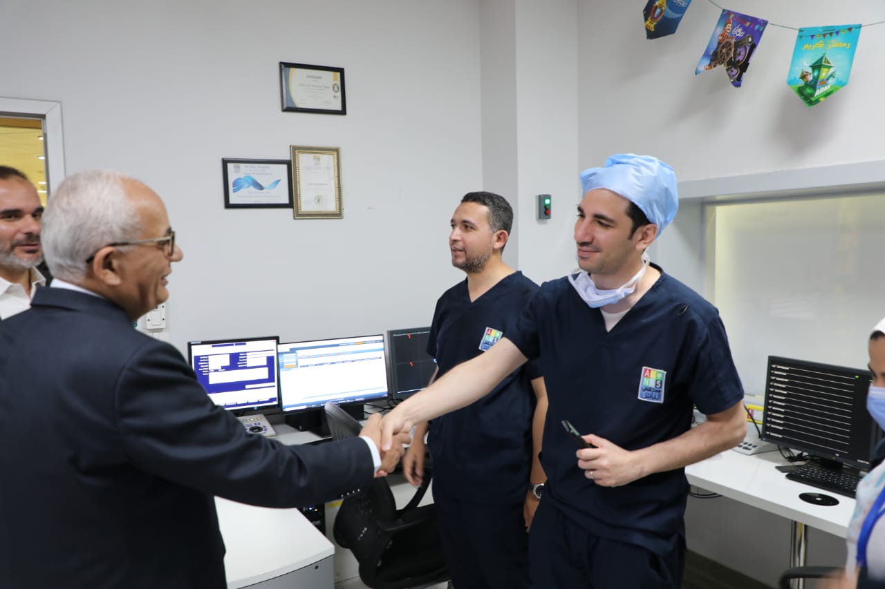 واطلع الوزير خلال زيارته على سير العمل بأقسام المستشفى المختلفة، حيث يقدم خدماته بالمجان في تخصصات جراحات القلب والعيوب الخلقية للأطفال.