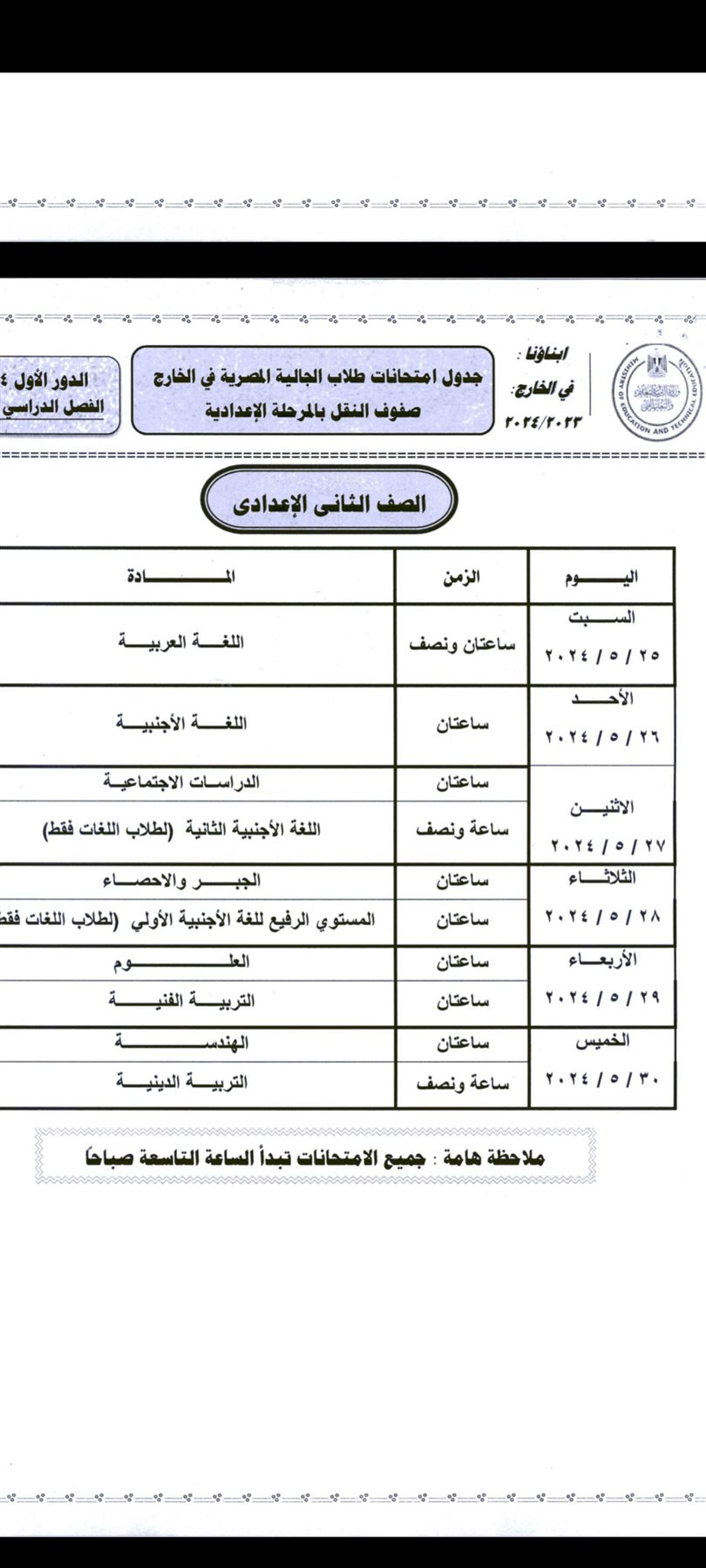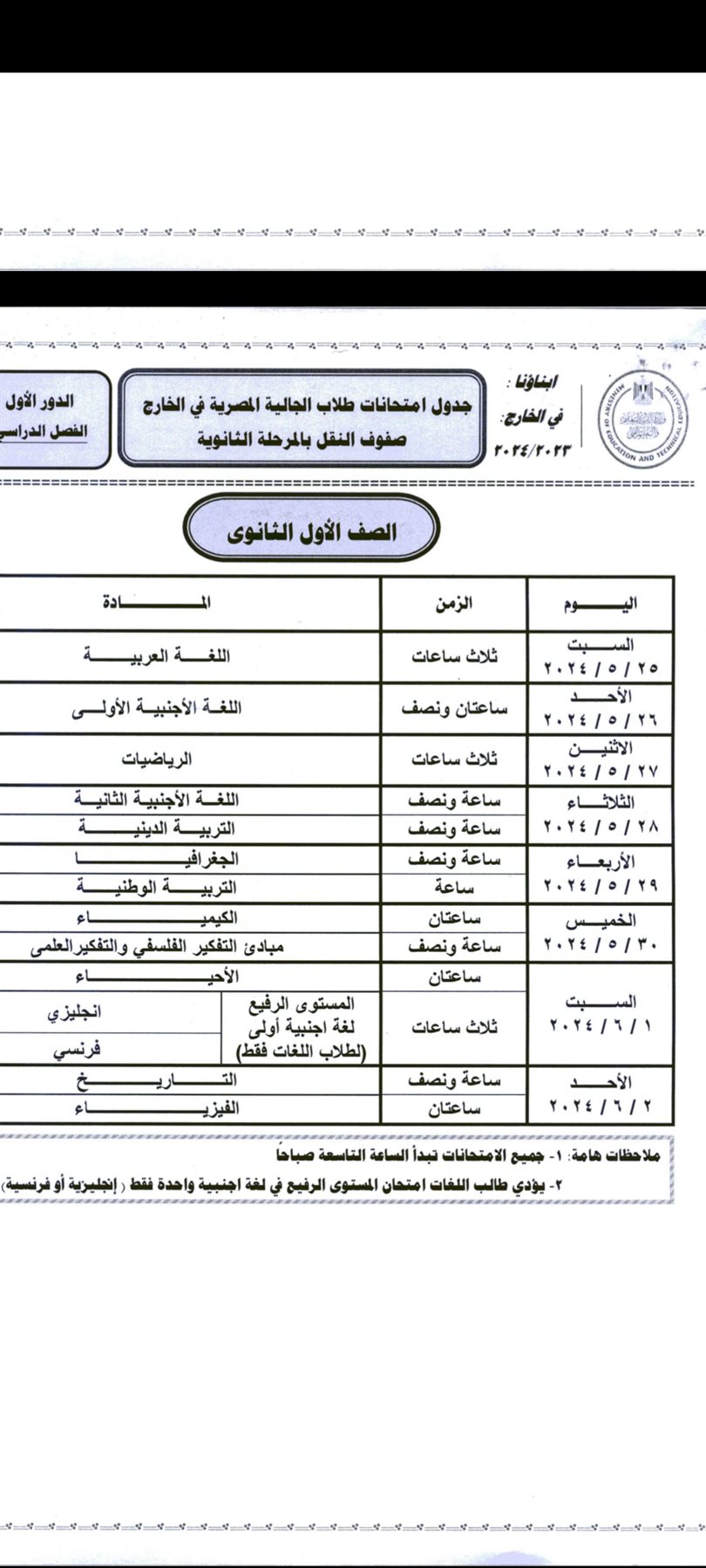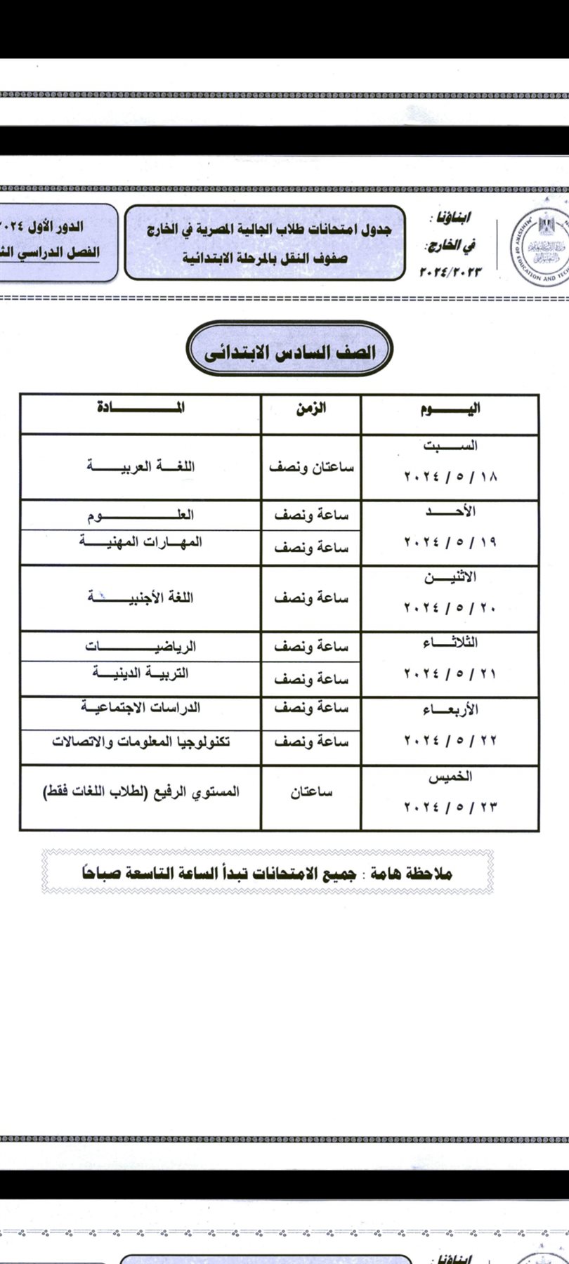 ننشر جداول امتحانات أبنائنا في الخارج 2024