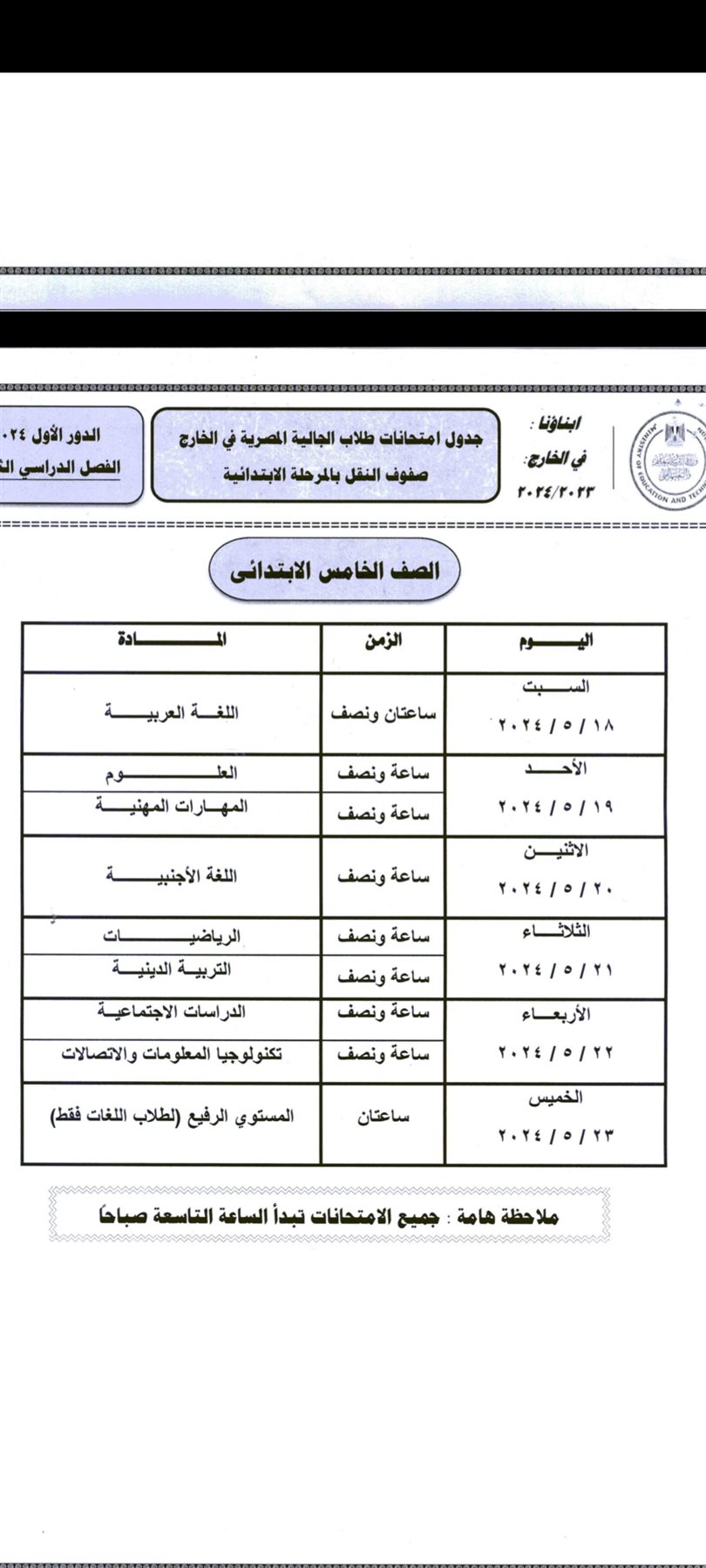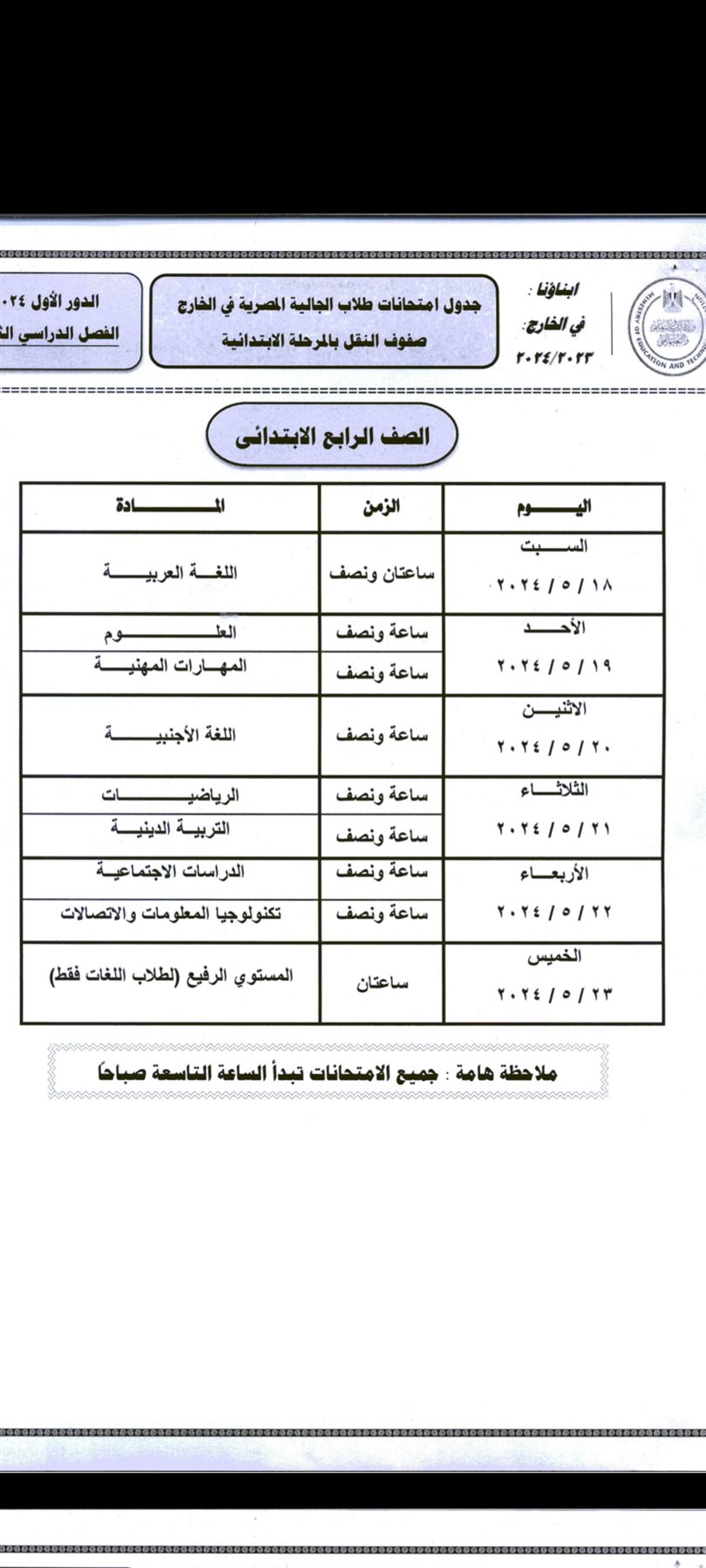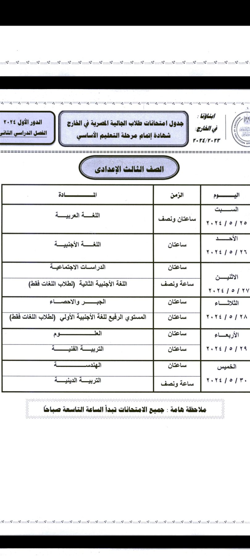 ننشر جداول امتحانات أبنائنا في الخارج 2024