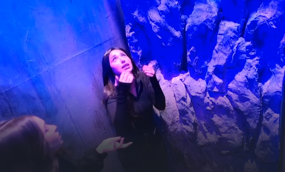وبعد وقوع آية سماحة وهاجر السراج في فخ مقلب رامز جاب من الآخر، وأثناء جلوسهما على الكوبري قبل سقوطهما في البحيرة، طلب رامز جلال من هاجر السراج أن تجسد مشهدا لها، وبدأت هاجر السراج في تجسيد شخصية حزينة، وبدأت في البكاء، وأوقفها رامز جلال قائلا: عياط في وقته، متكمليش، افتح الكوبري.