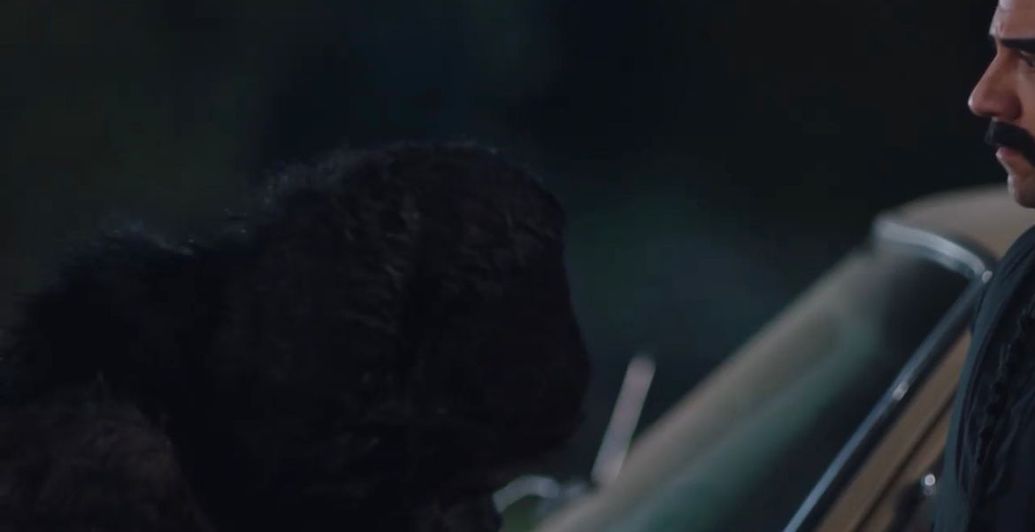 وعلى جانب آخر، يطارد أحد أفراد المطاريد الكبير، وبينما كادوا أن يطلقوا الرصاص عليه يفاجأ بالغوريلا تدافع عنه وتصاب بالرصاصة بدلا منه.