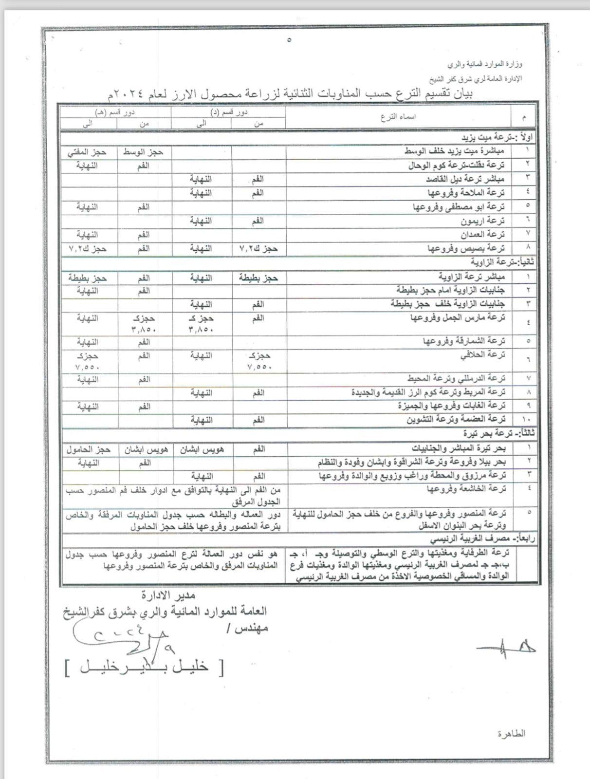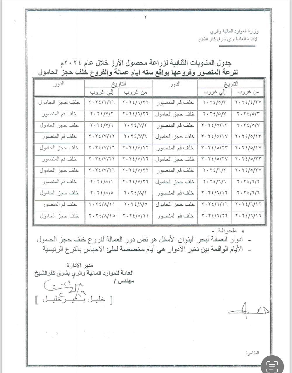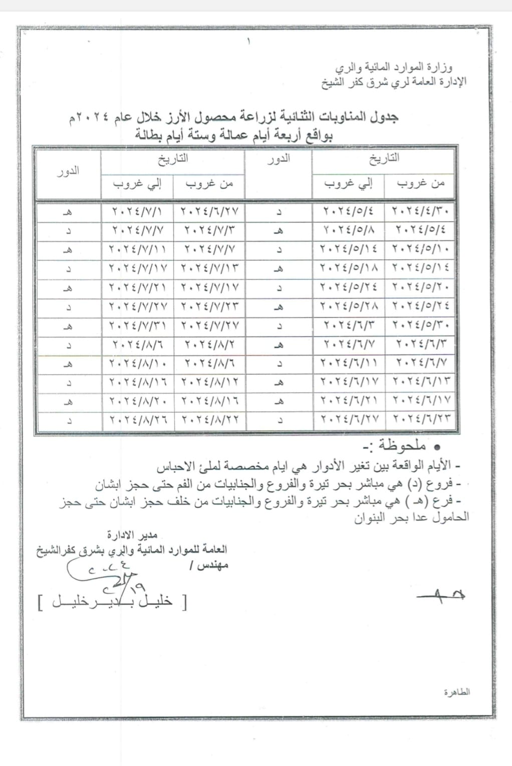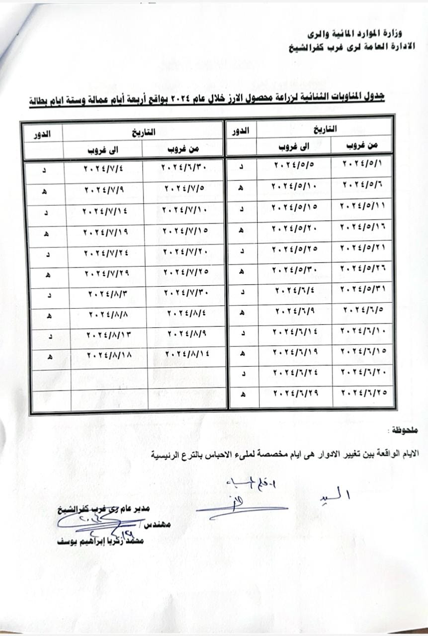 ننشر جداول المناوبات الثنائية لزراعة الأرز بمحافظة كفر الشيخ 2024