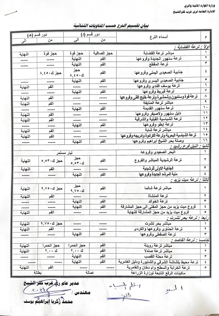 وأشارت الإدارة المركزية للموارد المائية والري بمحافظة كفر الشيخ، في المنشورات التي توضح جداول التناوب والذي “ القاهرة 24” علي صورة ضوئية منها، أن أدوار العمالة لبحر البنوان الأسفل هو نفس دور العمالة لفروع خلف حجز الحامول.