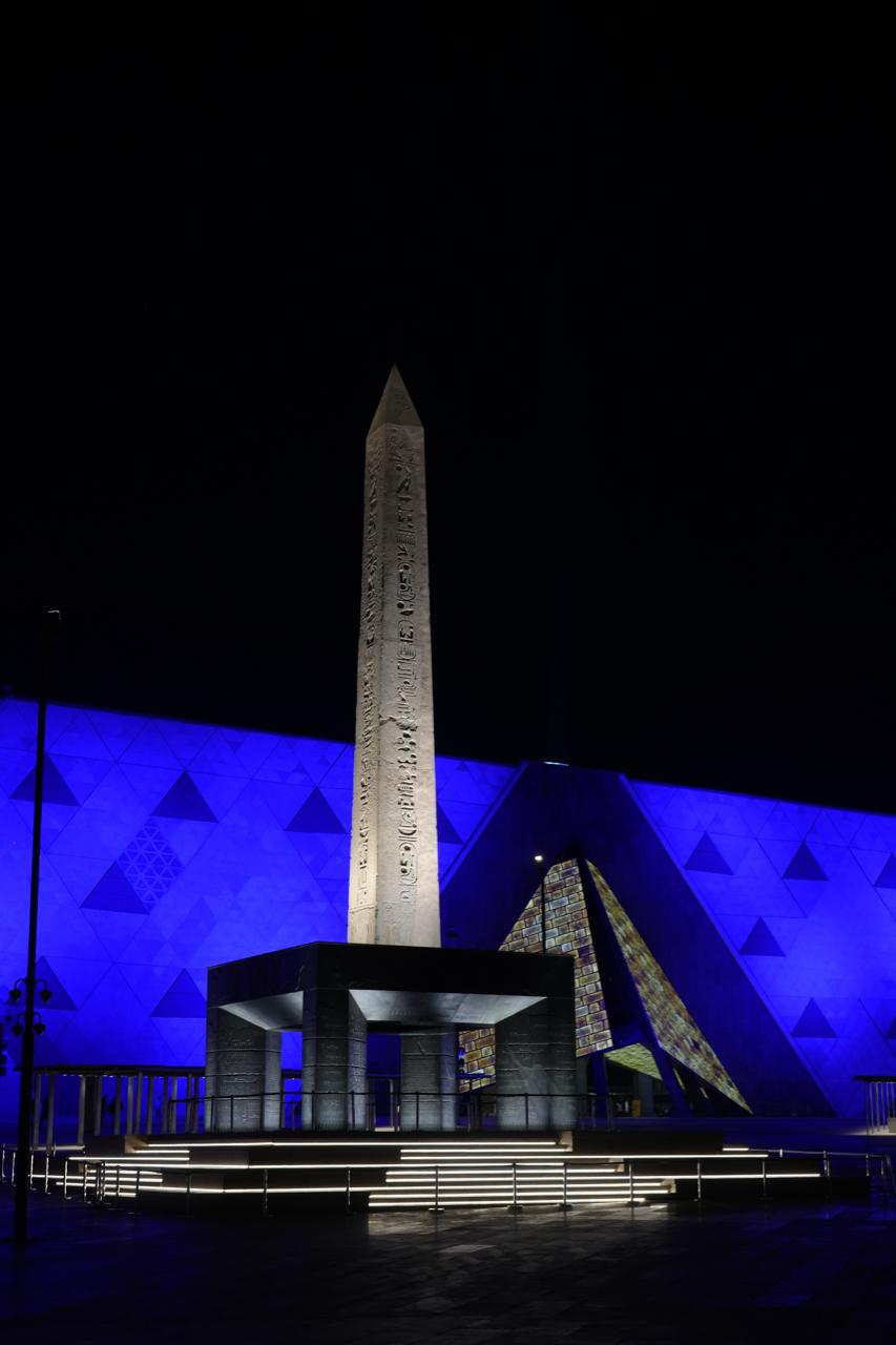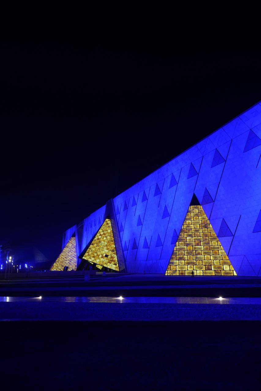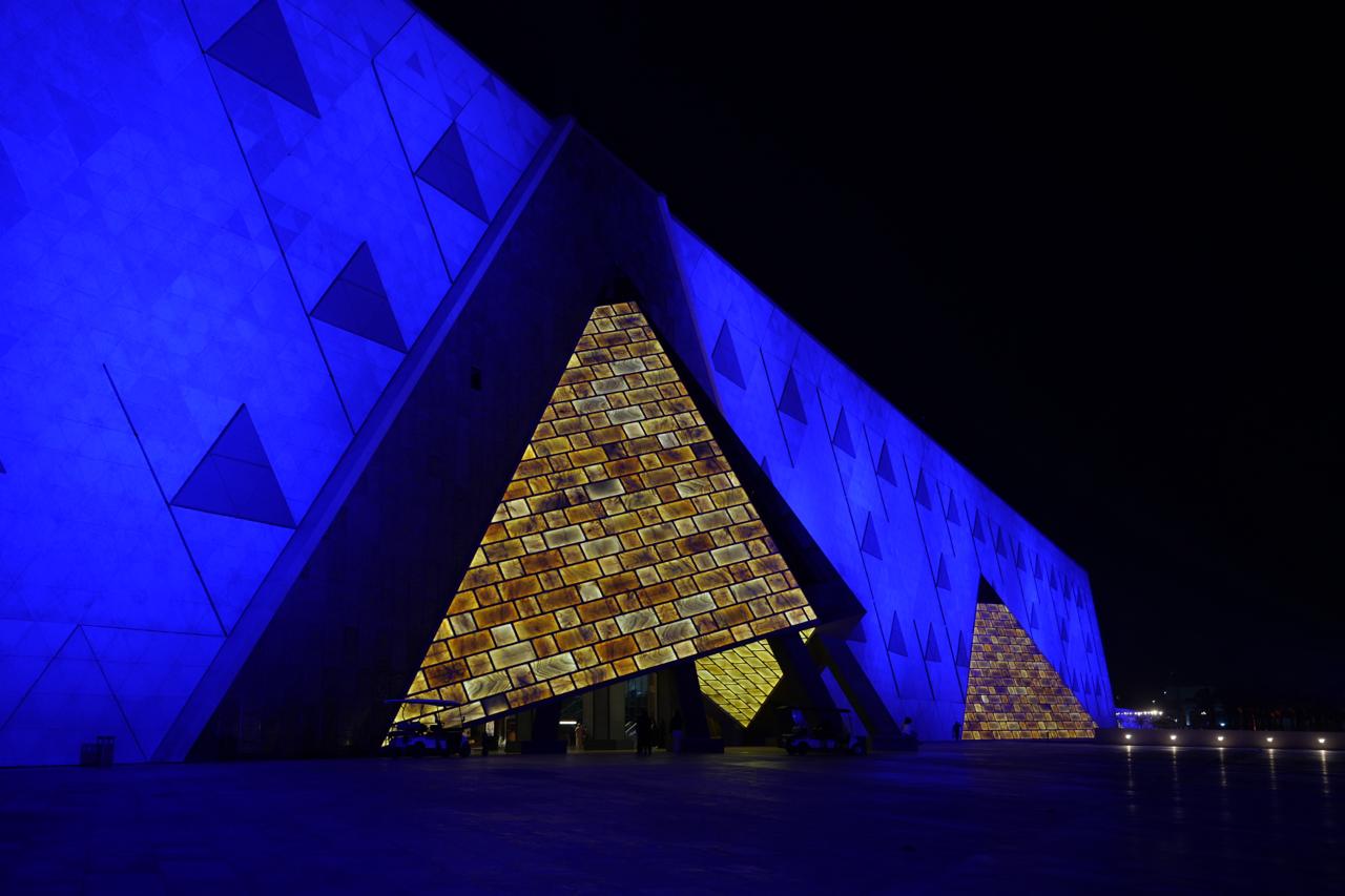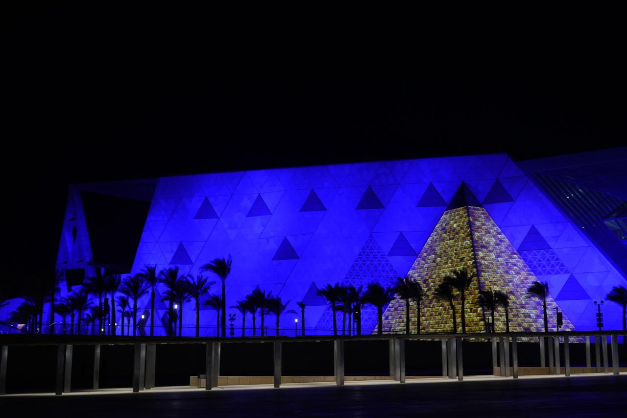 إضاءة المتحف المصري الكبير باللون الأزرق للتوعية بطيف التوحد