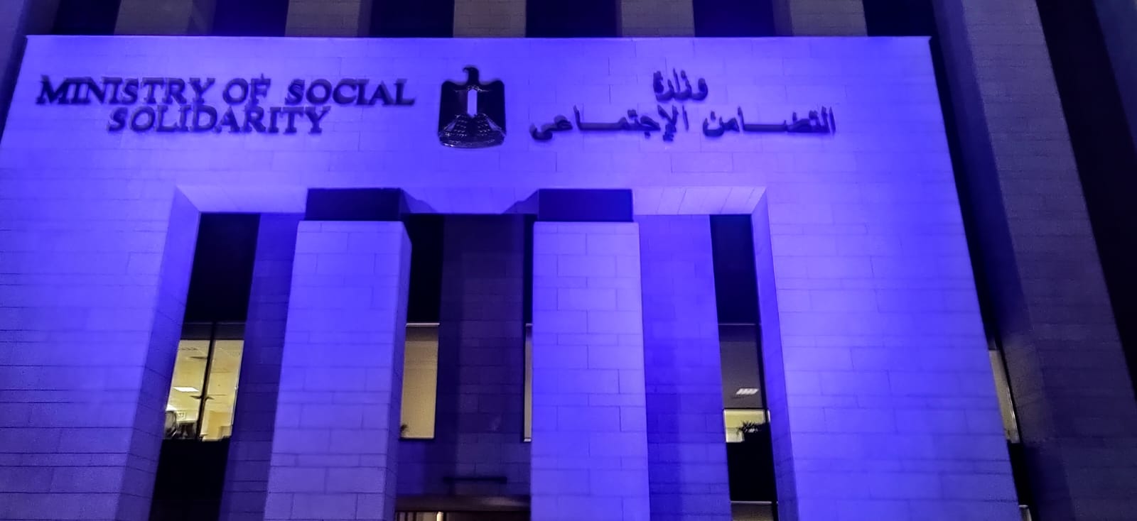 احتفالا باليوم العالمي للتوحد.. وزارة التضامن تضيء مبناها الجديد باللون الأزرق