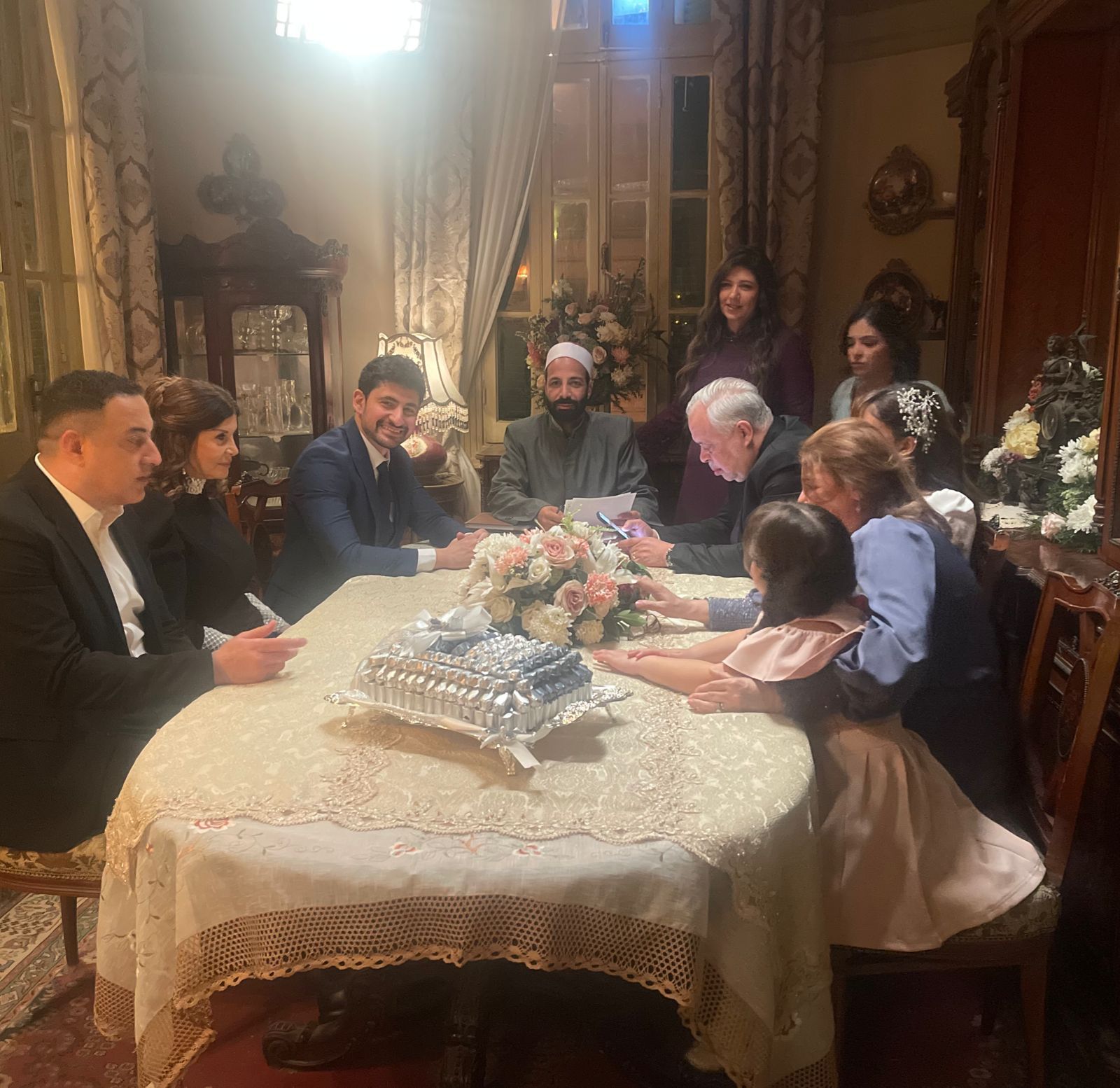 ونشر أمير المصري على حساباته الرسمية بمواقع التواصل الاجتماعي صور من كواليس تصوير مسلسل مليحة مشهد كتب كتابه على مروة أنور، رفقة الفنانة ميرفت أمين، دياب، وعدد آخر من الفنانين.