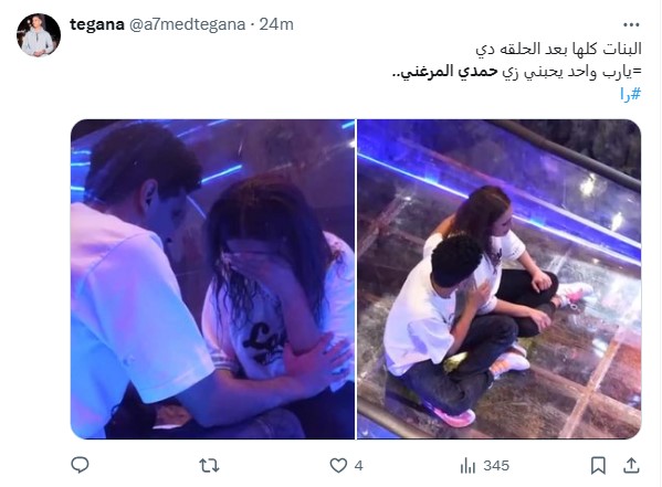 وعلى طريقة أحمد مالك وهدى المفتي، علق بعض المتابعين مُشاركين بعض المقاطع والصور من حلقة حمدي المرغني وزوجته إسراء، قائلين: البنات كلها بعد الحلقة دي.. يارب واحد يحبني زي حمدي المرغني، وآخر: البنات هتطلع دلوقتي تقولك أنا نفسي فـ حد دلوقتي زي حمدي المرغني.