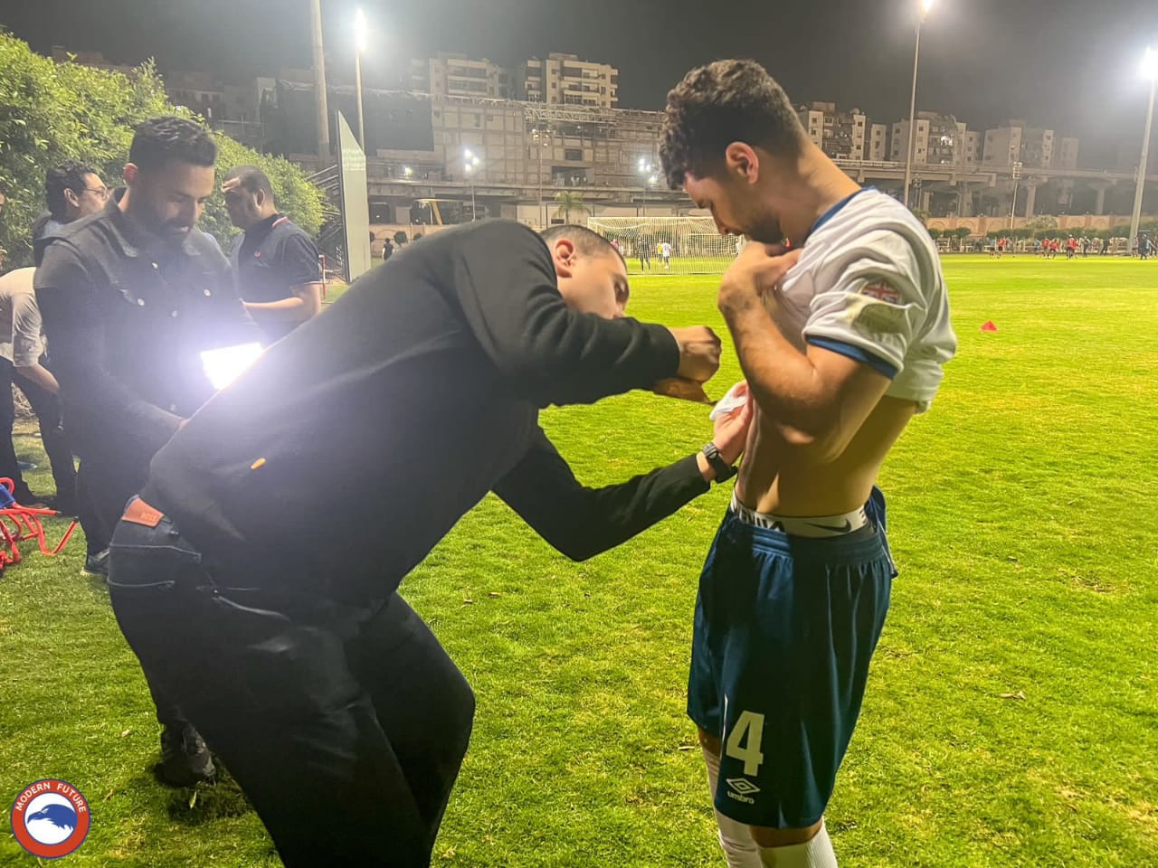 وأتم كلماته موجهًا الشكر للدكتور وليد دعبس رئيس مجلس إدارة نادي مودرن فيوتشر وهيثم عرابي المدير التنفيذي للنادي وجميع أفراد الجهاز الطبي بالنادي على حسن التعاون لتطبيق تلك التجربة مع النادي.