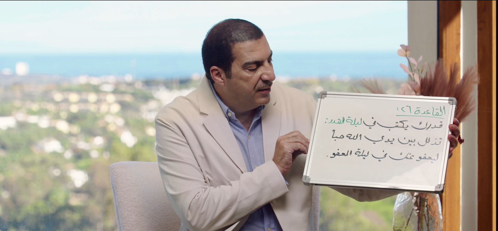 واختتم بذكر القاعدة السادسة والعشرين، قائلًا: " قدرك يُكتب في ليلة القدر: تذلل بين يدي الله حبًا ليعفو عنك في ليلة العفو".