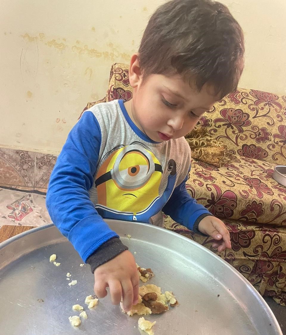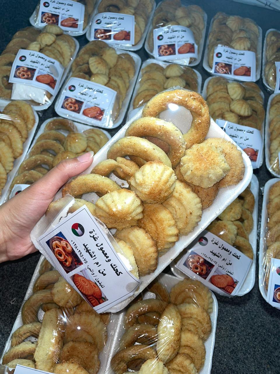 كحك أم الشهيد.. مشروع أسرة فلسطينية نزحت إلى مصر، بعد أن دمر القصف الإسرائيلي منزلهم بغزة، حيث هربت أم و3 أطفال مع زوجها إلى منزل والده ووالدته في حي العجوزة بالقاهرة.