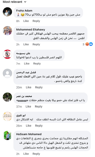 وتباينت ردود أفعال أهالي الأقصر على موقع التواصل الاجتماعي فيس بوك والتي انهالت فور الإعلان عن إحياء حمو بيكا لأولى حفلاته بالأقصر ما بين مرحب ومعارض وما بين مستكتر لأسعار التذاكر والتي بدأ يتداول عن أسعارها والتي تبدأ من 300 جنيه وحتى 700 جنيه، وخاصة مقارنة بمستويات الدخل في الصعيد.