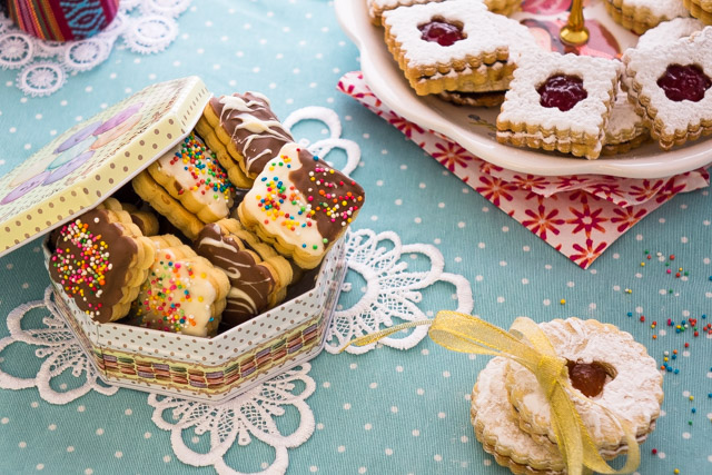 - احشي كل شكلين بالمربى أو الشوكولاتة وضعيهم في الثلاجة قليلا قبل التقديم.