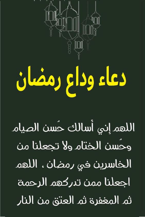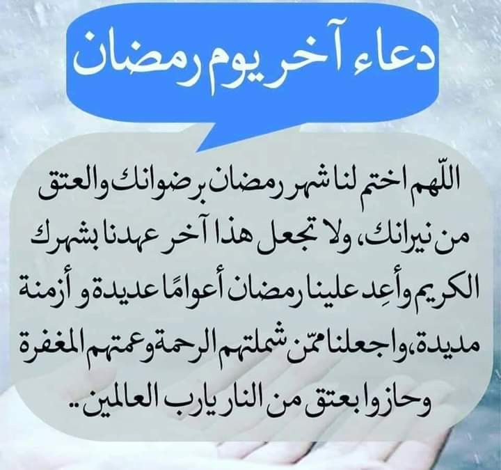 - اللهم اختم لنا شهر رمضان برضوانك والعتق من نيرانك.