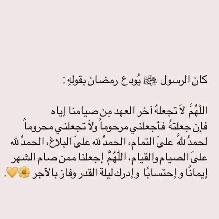 - اللهم لا تجعله آخر العهد من صيامنا، واغفر لنا ذنوبنا واجعلنا من المقبولين.