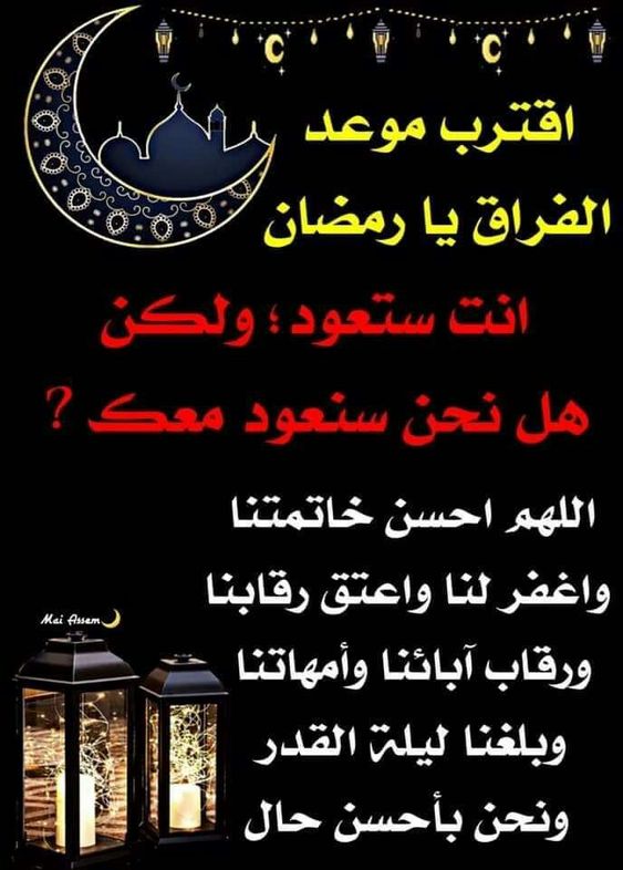 - اللهم مع رحيل رمضان خذ معه ذنوبنا وهمومنا وتعبنا وانكسارنا واعتق رقابنا من النار.