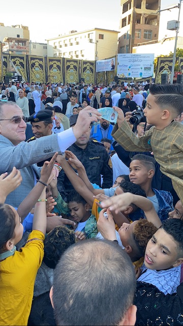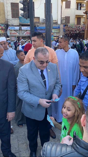 قام اللواء خالد عبد الحميد مساعد وزير الداخلية لقطاع جنوب الصعيد، واللواء حسن عبد العزيز مدير أمن الأقصر وفي مشهد جميل بتوزيع العيديات على الأطفال بعد صلاة العيد بساحة مسجد سيدي أبو الحجاج الأقصري.