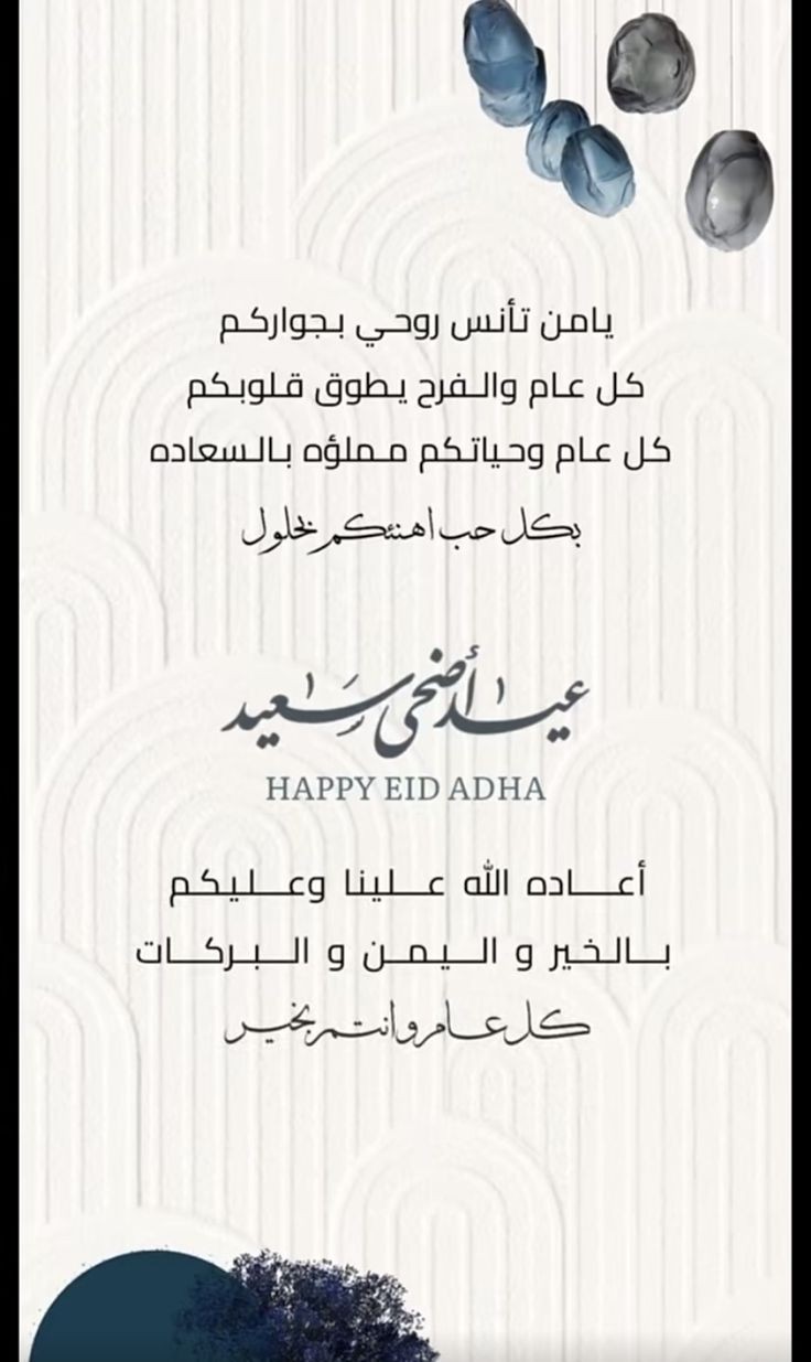 - كما يمكن نشر صور تعبر عن السعادة والسرور بإن يكون أول عيد مع الحبيبة، ويحمل عبارة تتضمن كلام رومانسي في عيد الفطر.