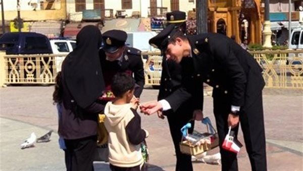 بمناسبة عيد الفطر.. رجال الشرطة يوزعون الورود والهدايا على المواطنين | صور