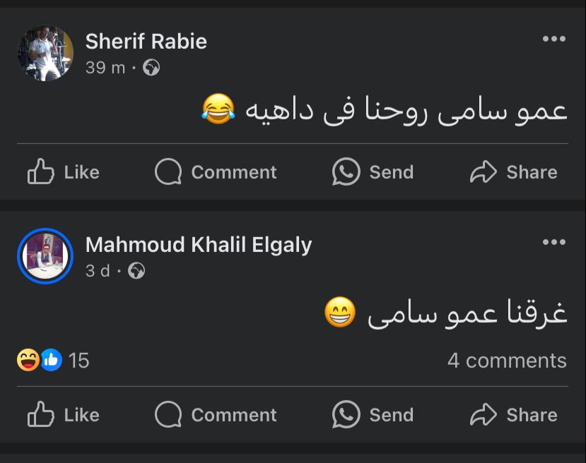 بينما علق آخر قائلا: روحنا في داهية يا عمو سامي.