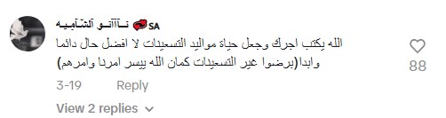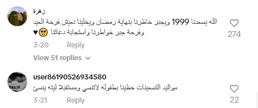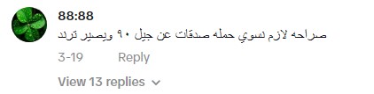 واقترح متابع آخر عبر تعليقه: صراحه لازم نسوي حملة صدقات عن جيل 90 ويصير تريند، ومتابع يشارك: أزمة التسعينيات طلعت عالمية، ومتابعة أخرى تشكر هذه الفتاة، قائلة: نيابة عن مواليد التسعينات بنشكرك، الله يكرمك يارب ويستجيب دعائك، وآخر: حسيت بفرحة داخلي، الله يكتب أجرها ويرزقها ويحقق لها أمانيها ويفتحها بوجهها وييسر لها عباده الصالحين.
