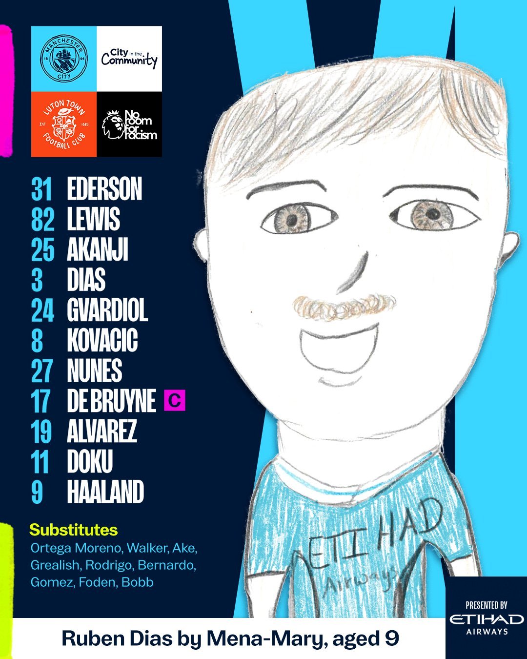 على الجانب الأخر، يبدأ فريق لوتون تاون مباراة مانشستر سيتي في الدوري الإنجليزي، بتشكيل مكون من: