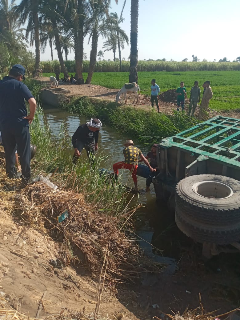 وتم تفريغ الحمولة من قبل عاملين بالشركة على سيارات تابعة لهم، وتم الدفع بونش لانتشال السيارة من المياه، ولا توجد أي إعاقة بالطريق.