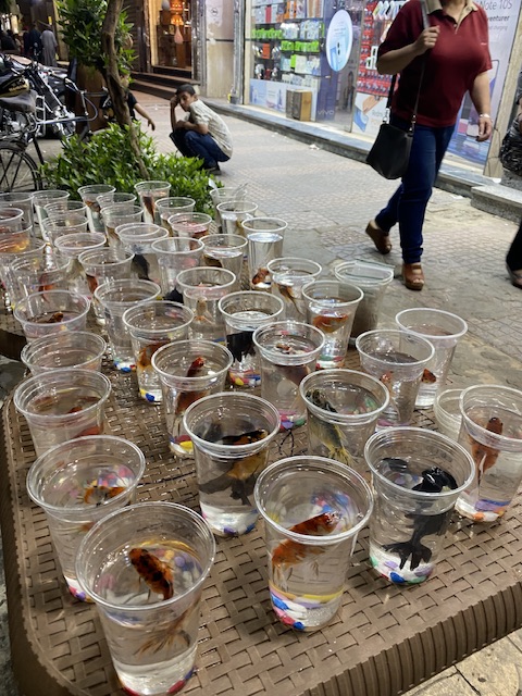 أسماك ملونة بكوبايات شفافة بشوارع الأقصر