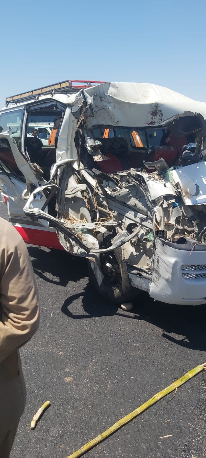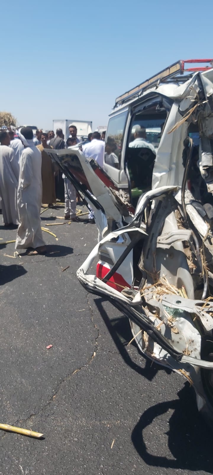 إصابة 8 أشخاص إثر حادث تصادم ميكروباص مع مقطورة قصب في قنا | صور