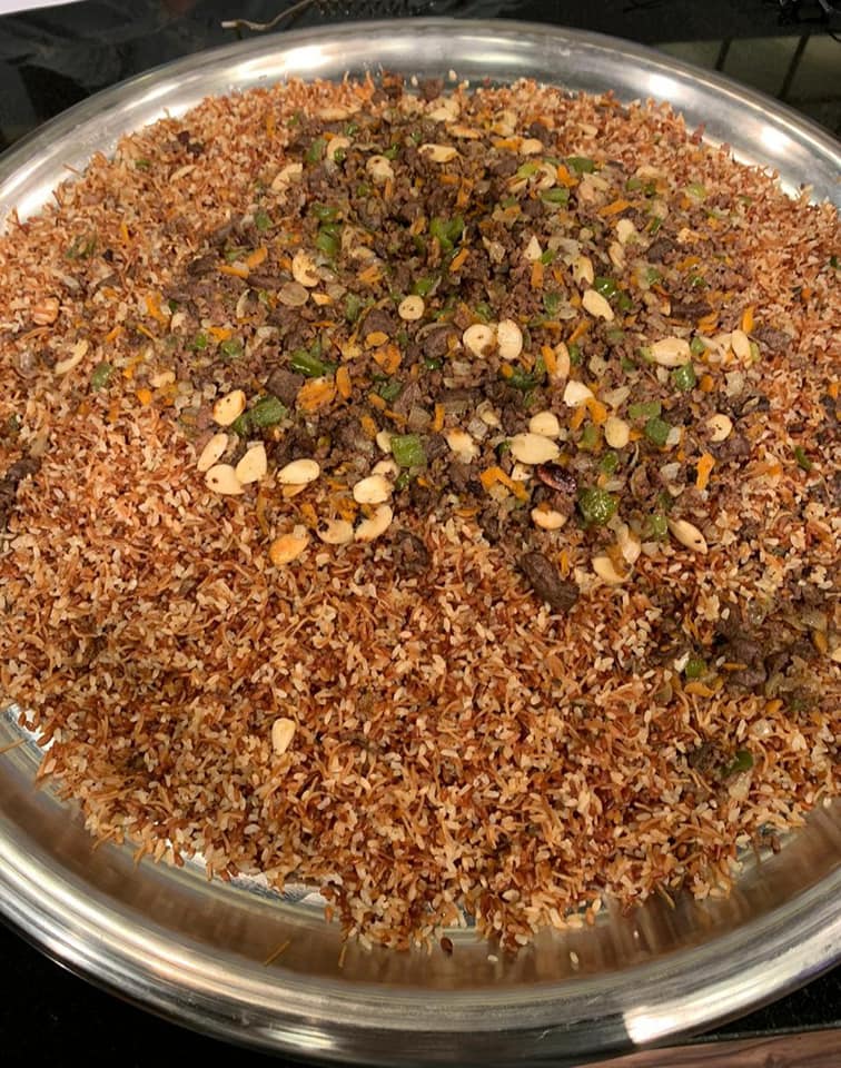 - التقديم: يُقدم أرز الطباخين ساخنًا مع اللحم المفروم، ويُزين بالزبيب والسوداني أو المكسرات حسب الرغبة.