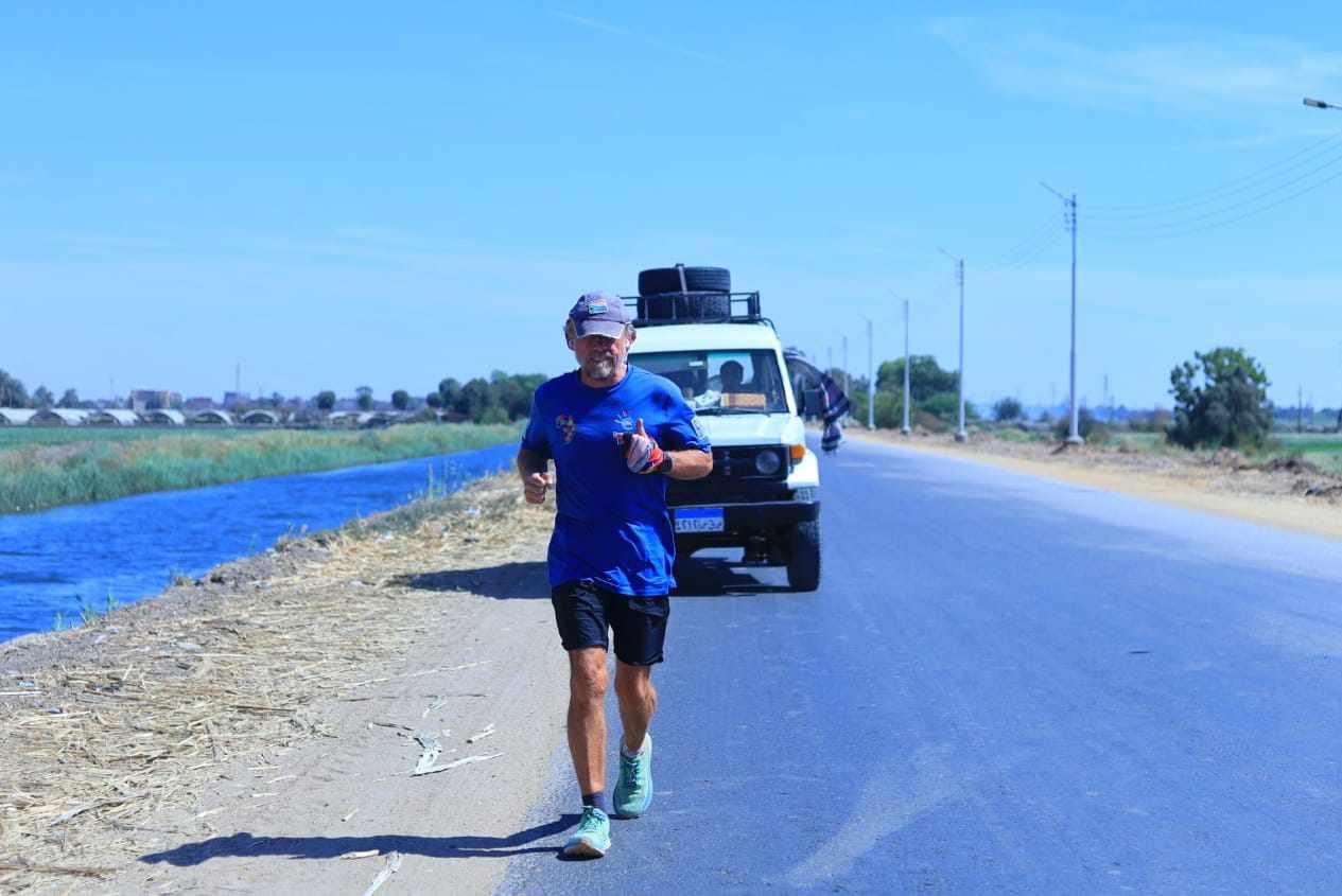 وقطع المغامر الجنوب إفريقي مسافة 8983 كيلو متر، على قدميه في مدة استغرقت 7 أشهر و6 أيام، مكملا رحلته بعد وصوله الأقصر إلى برج القاهرة حيث محطة وصوله الأخيرة مارا بالطرق الزراعية الممهدة، لتصبح مصر هي الدولة رقم 9 التي يمر عليها خلال رحلته أملا بتسجيل رقم قياسي جديد له.