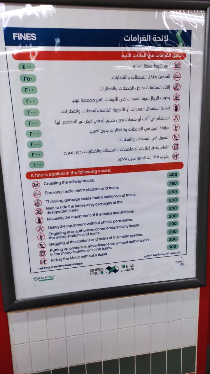 - 400 جنيه غرامة فورية حال عبور شريط سكة المترو.