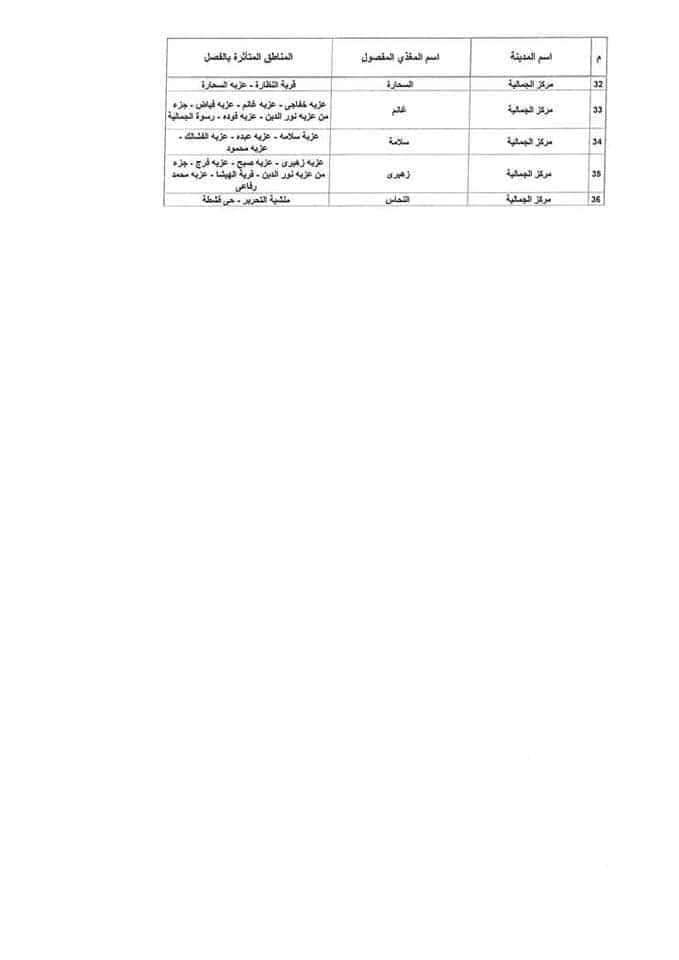 مجموعة 1: ضمت مدينة محلة الدمنة، ومدينة المنصورة، ومركز المنصورة، ومدينة دكرنس، وسيتم فصل التيار الكهربائي من الساعة 12 حتى الساعة 1 ظهرًا.