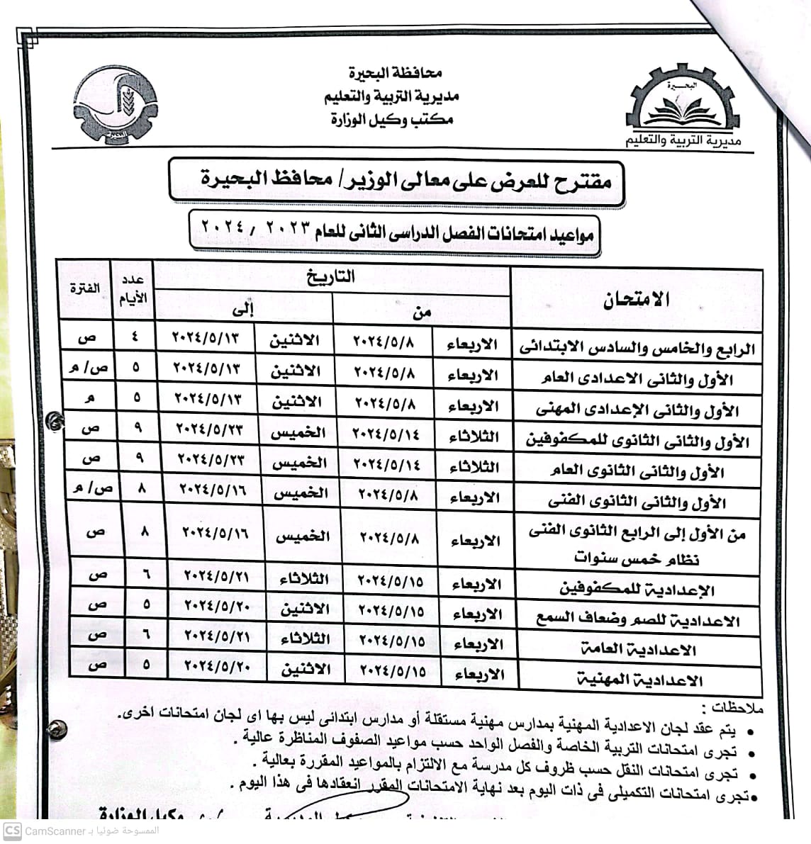 اعتماد مواعيد امتحانات الفصل الدراسي الثاني بمحافظة البحيرة