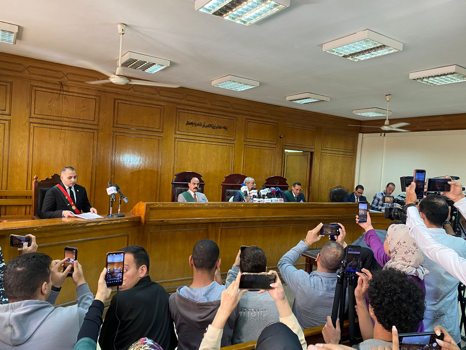 واصطحبت قوة أمنية المتهم إلى محكمة الجنايات المنعقدة بمجمع محاكم التجمع الخامس لحضور أولى جلسات محاكمته، وسط وجود من أسرة الفتاة المتوفاة وأسرة المتهم وأقاربهم.