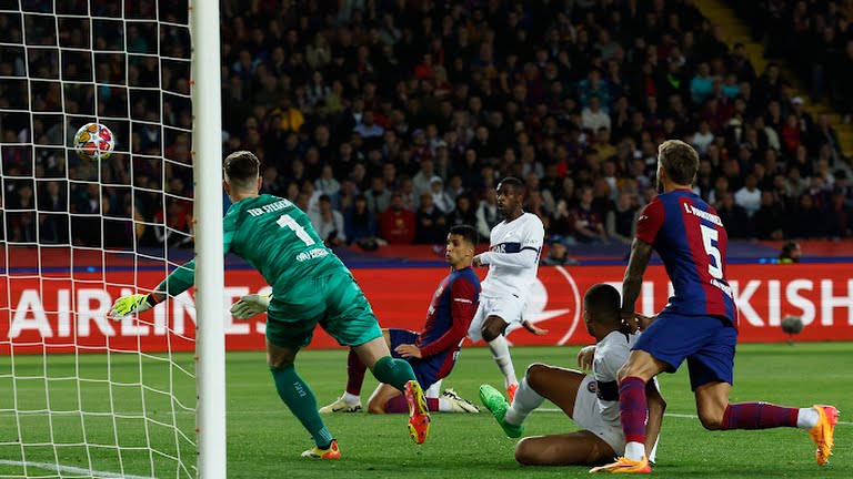 الشوط الأول من مباراة برشلونة وباريس سان جيرمان في إياب ربع نهائي دوري أبطال أوروبا، انتهى بالتعادل الإيجابي على ملعب البلوجرانا “مونتجويك الأولمبي” بهدف لكل فريق؛ لتصبح النتيجة الإجمالية بعد نهاية الشوط الأول تقدم الفريق الكتالوني بأربعة أهداف لثلاثة، مستفيدًا من فوزه ذهابًا في فرنسا بملعب حديقة الأمراء بثلاثية لهدفين.