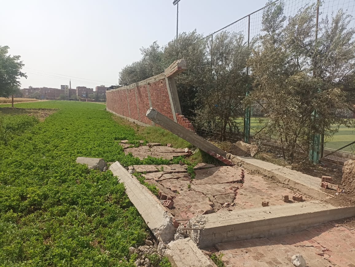وأضاف: نناشد المسؤولين بسرعة التحرك وإزالة الجزء المتبقي من السور قبل أن يسقط على رؤوس الفلاحين والشباب في ملعب كرة القدم وكذلك سرعة إزالة الكتل الخرسانية التي أتلفت الأرض الملاصقة لملعب مركز الشباب.