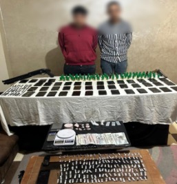 كما ضبط رجال الأمن بمديرية أمن البحيرة، تشكيل عصابى مكون من عاطلين، مقيمان بدائرة مركز شرطة شبراخيت، لهما معلومات جنائية، تخصص فى الإتجار بالمواد المخدرة وبحوزتهما بندقية خرطوش وفرد محلى وعدد من الطلقات وكمية من مخدر الحشيش وزنت 4،500 كيلو جرام وكمية لمخدرى الهيروينو الآيس وعدد من الأقراص المخدرة و3 ميزان حساس ودراجة نارية.