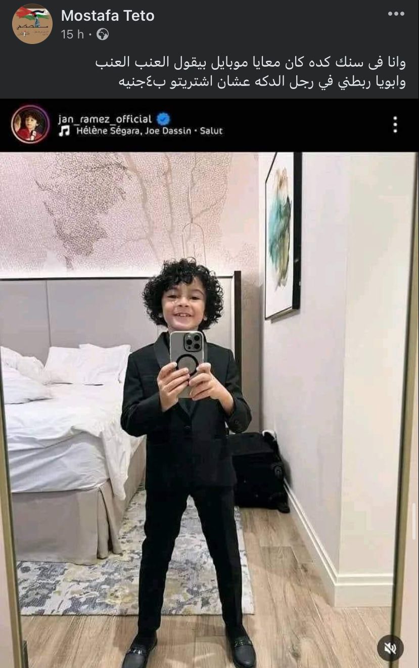 أثارت صورة للطفل جان رامز الجدل بعد تداولها على منصات التواصل الاجتماعي، حيث ظهر فيها بهاتف محمول باهظ الثمن، وهو ما واجهه الجمهور بتعليقات سلبية تمت مُشاركتها على المنشور.