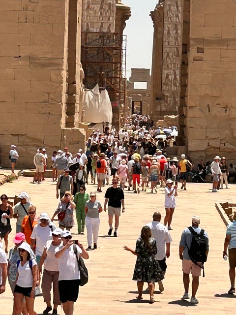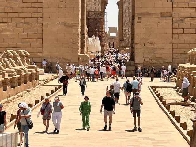 واستقبلت معابد الكرنك 5000 سائح من مختلف الجنسيات والأعمار، والذين امتلأت بهم ساحات المعبد وجنباته، قادمين عبر رحلات اليوم الواحد من الغردقة، أو من طيران الشارتر القادم مباشرة إلى المدينة.