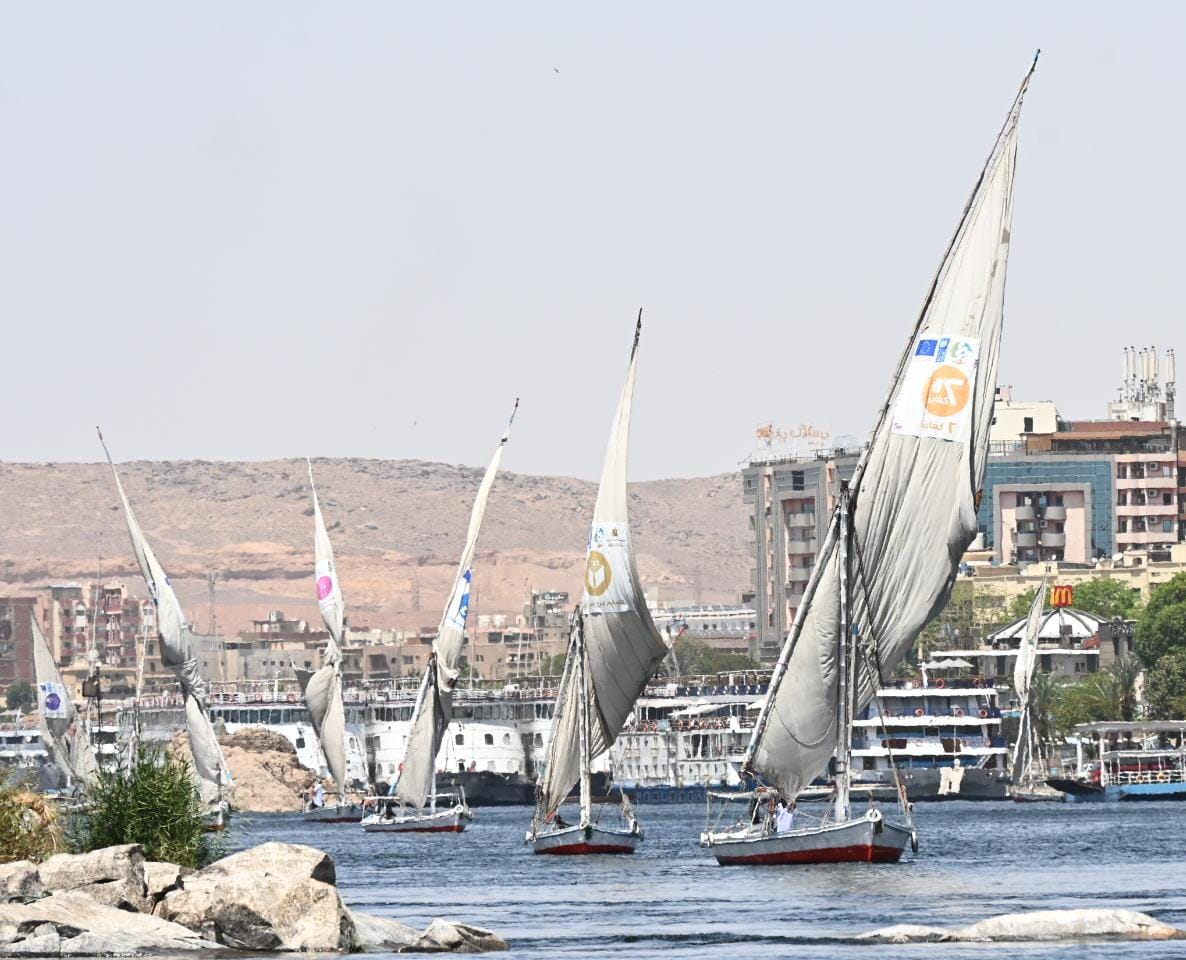وزيرة التضامن ومحافظ أسوان يشهدان اصطفاف المراكب الشراعية لاستعراض شعارات برنامج وعي