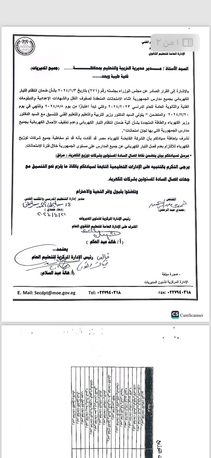 وأوضح أن جميع الإدارات التعليمية على مستوى محافظات الجمهورية بأكملها، سوف ترسل خطابات إلى الوحدات المحلية من أجل مخاطبة شركة الكهرباء، وذلك قبل بدء امتحانات نهاية العام الدراسي، فيما يتعلق بشأن أنه يتوجب عدم قطع الكهرباء نظرًا لأن امتحانات النقل بالمرحلة الثانوية إلكترونية.