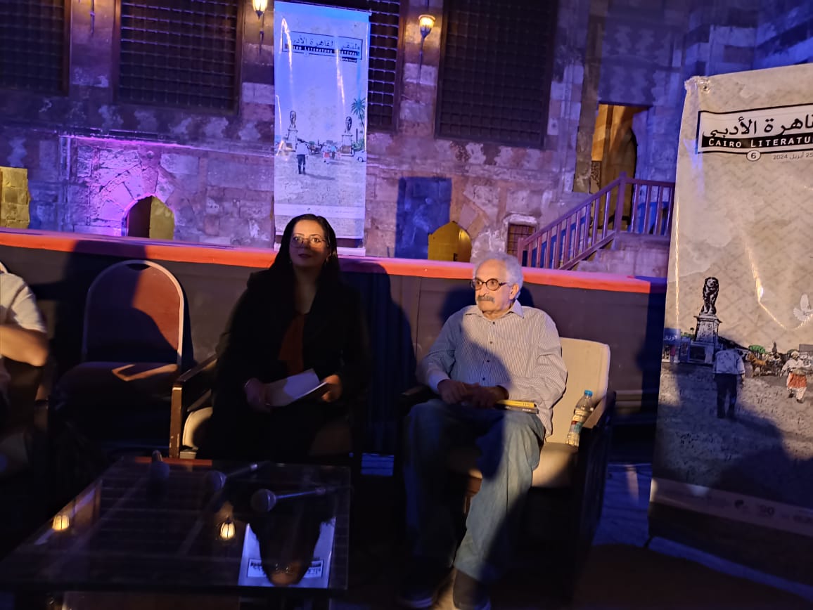 حل الكاتب الكبير صنع الله إبراهيم، ضيفا على ملتقى القاهرة الأدبي، في دورته السادسة المنعقدة بقبة الغوري، في يومها الثالث.
