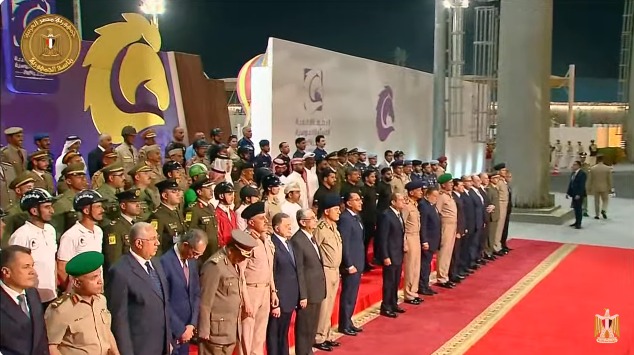 الرئيس السيسي يتوسط صورة تذكارية مع المنتخبات المشاركة في البطولة العربية العسكرية للفروسية