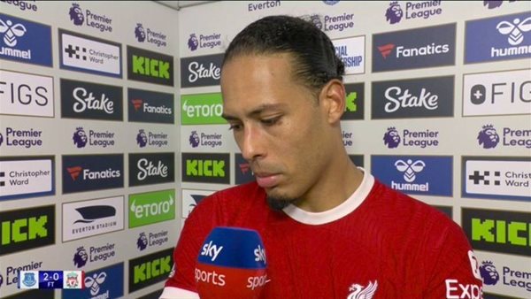 أظهر فيرجيل فان دايك، مدافع نادي ليفربول، حزنه عقب الهزيمة على يد نادي إيفرتون، في المباراة المؤجلة من الجولة التاسعة والعشرين من مسابقة الدوري الإنجليزي الممتاز.