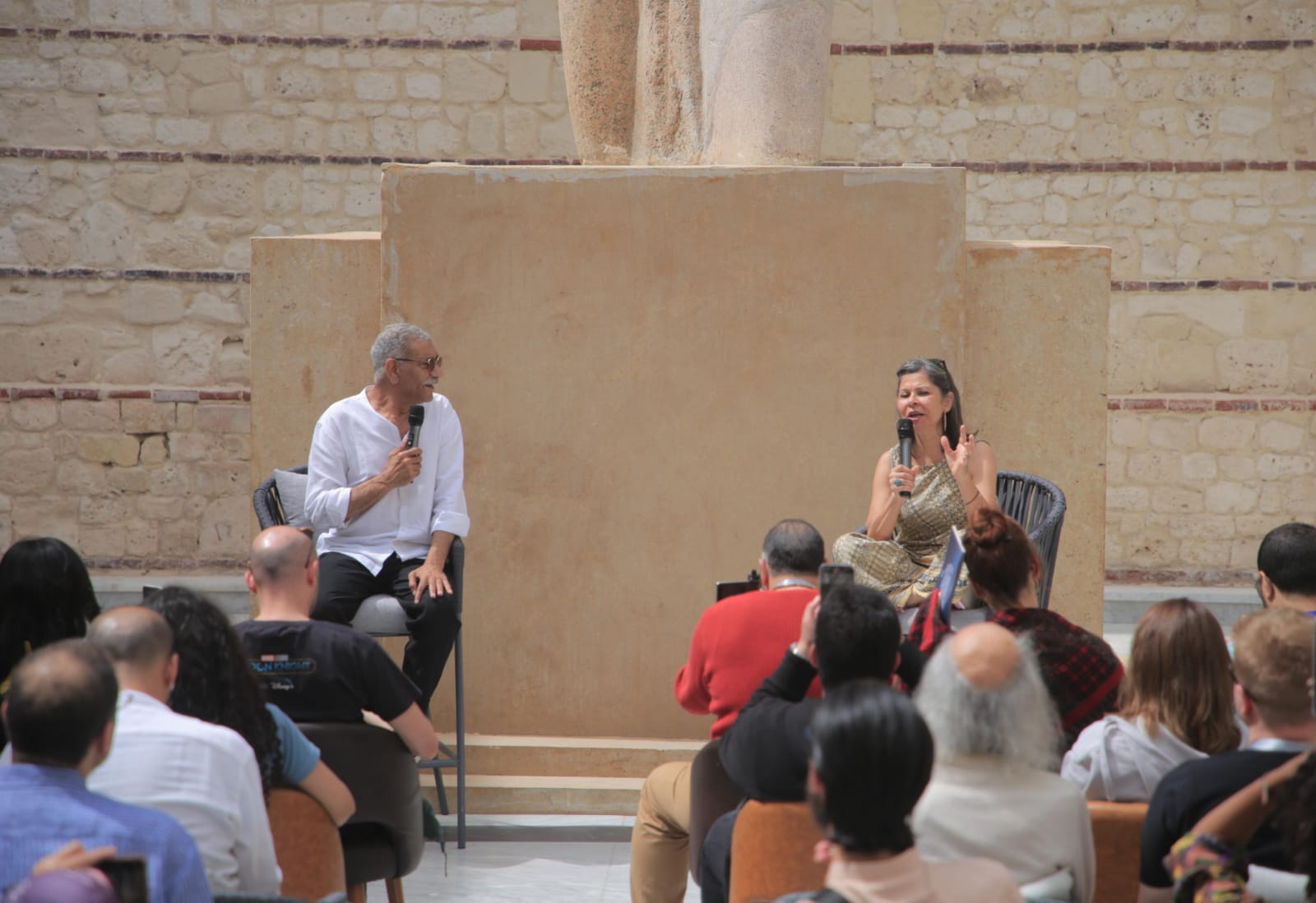 قاعدة متربعة.. سلوى محمد علي تفاجئ الحضور خلال إدارتها ندوة للفنان سيد رجب بمهرجان الإسكندرية